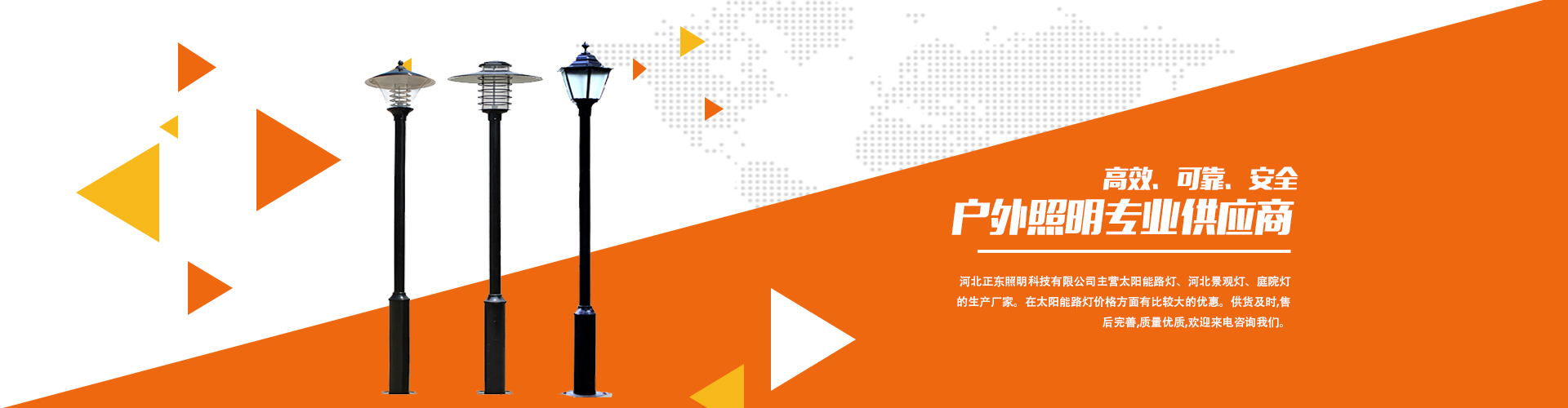 河北正东照明科技有限公司专业从事:太阳能路灯、景观灯、庭院灯等产品的生产与销售。